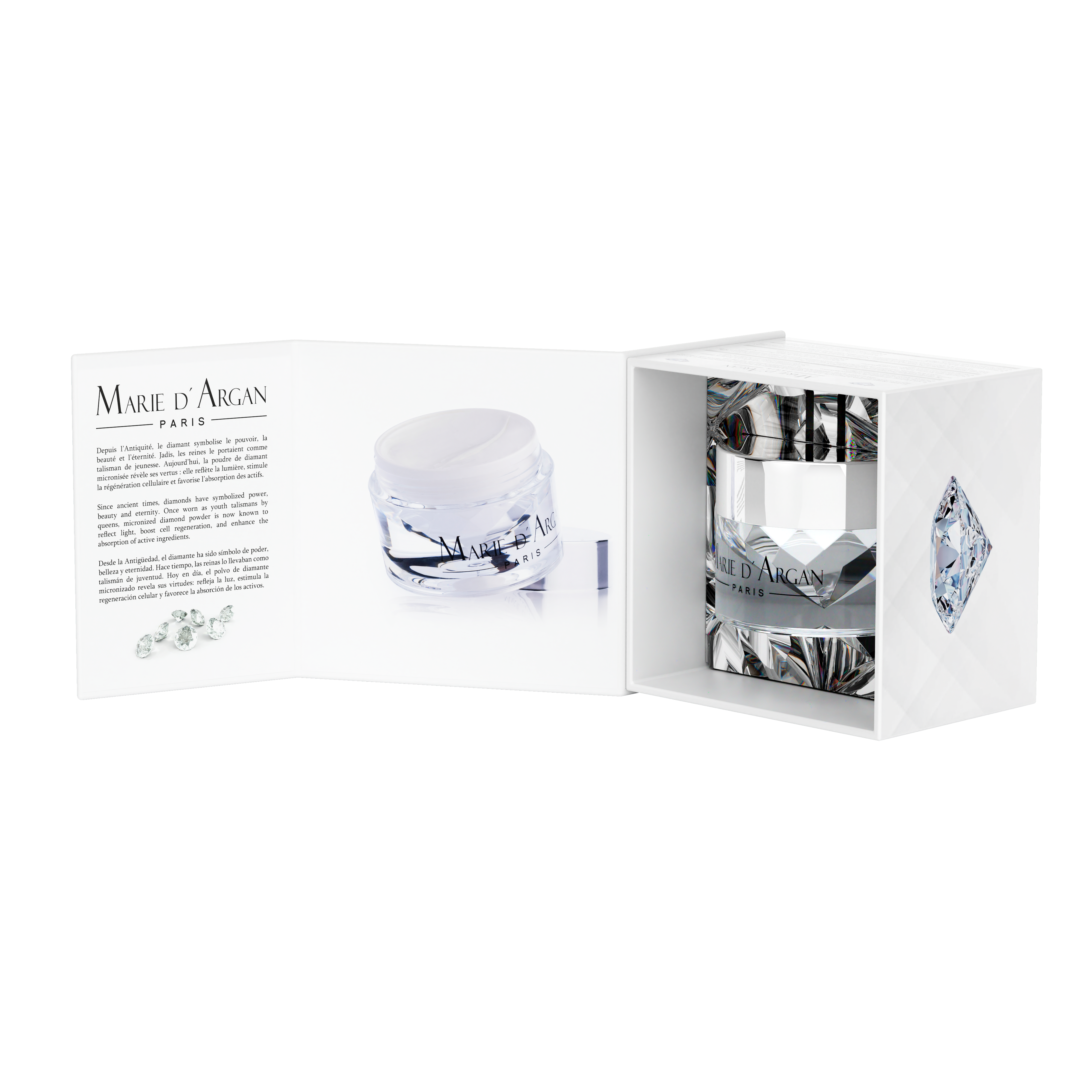 The Diamond Luminous Day Cream is an exclusive and luxurious restructuring treatment with anti-aging properties. Formulated with a Sun Protection Factor SPF* 20, this cream provides the skin with superior protection, offering an intense combination of anti-aging active ingredients with Pomegranate Stem Cells, Diamond Powder and White Truffle. Its formula immediately penetrates the skin, leaving a soft sensation of smoothness and an instantly satin appearance. Increases the level of moisture from the first application without leaving greasy residue or white film. Pomegranate Stem Cells stimulate accelerated regeneration of skin cells, helping to restore a younger appearance. Diamond powder provides a soft luminosity and also stimulates collagen production. The White Truffle, also known as the “White Diamond”, helps unify the tone of the skin complexion. Ideal for mature skin.